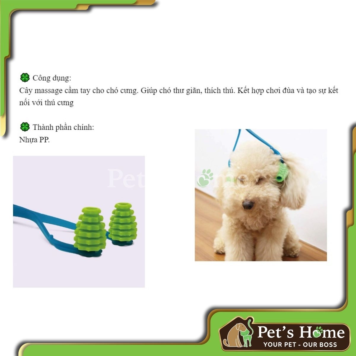 - Cây massage bằng nhựa giúp chó thư giãn.