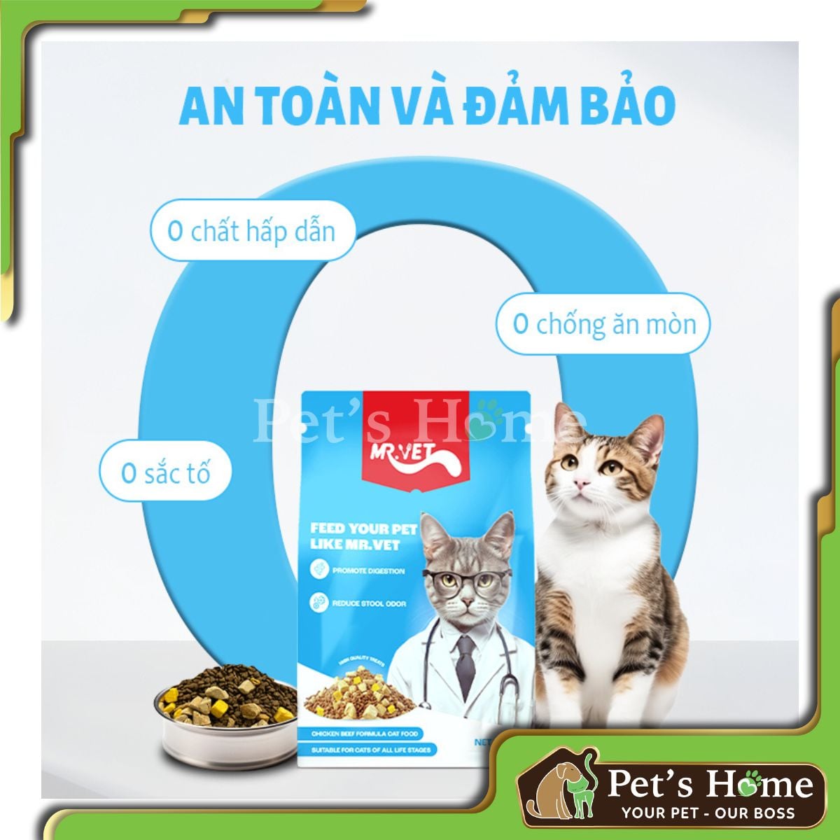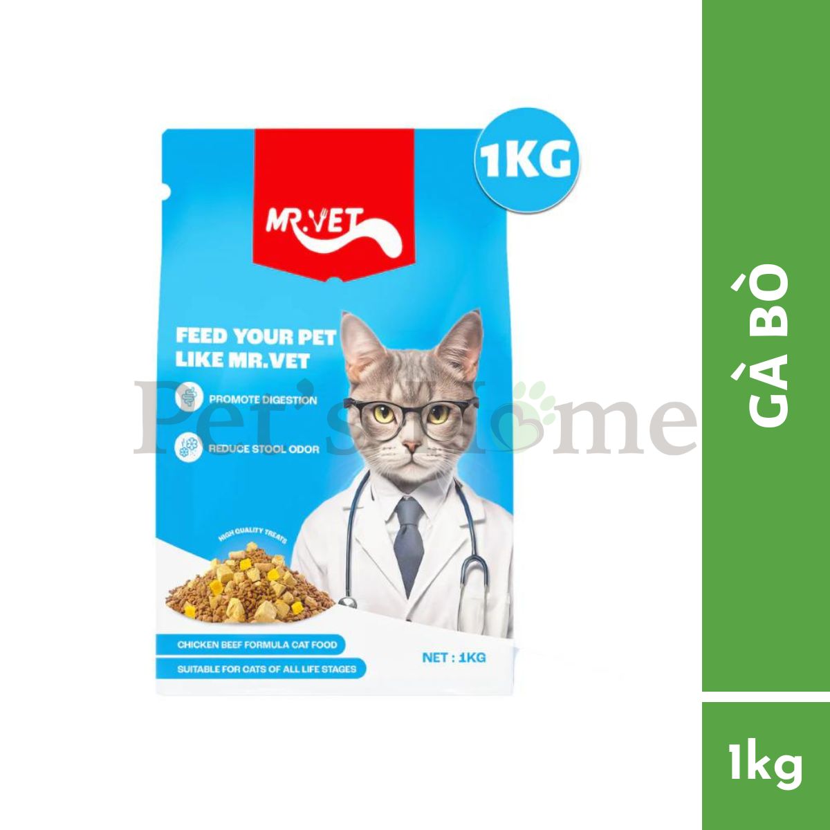 Mr.vet: Một loại thức ăn có độ đạm cao cho mèo lấy dinh dưỡng từ động vật cao cấp, phù hợp cho mọi độ tuổi của mèo, bao gồm cả mèo con, mèo trưởng thành và mèo mang thai.