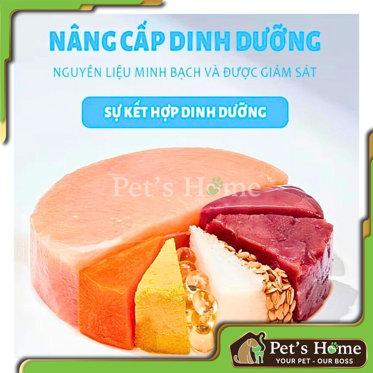 📋 Thành phần: - Thịt gà và thịt bò với topping thịt gà, gan gà, lòng đỏ trứng sấy khô. Thịt gà là thực phẩm ít gây dị ứng, trong khi thịt bò có thể cung cấp năng lượng cao hơn.