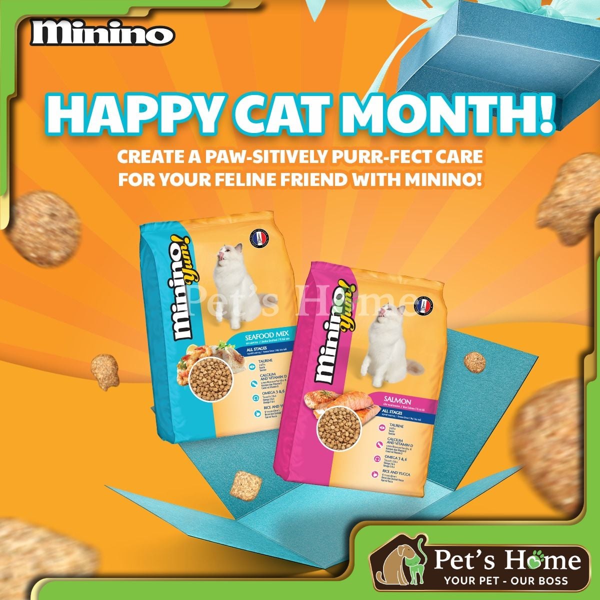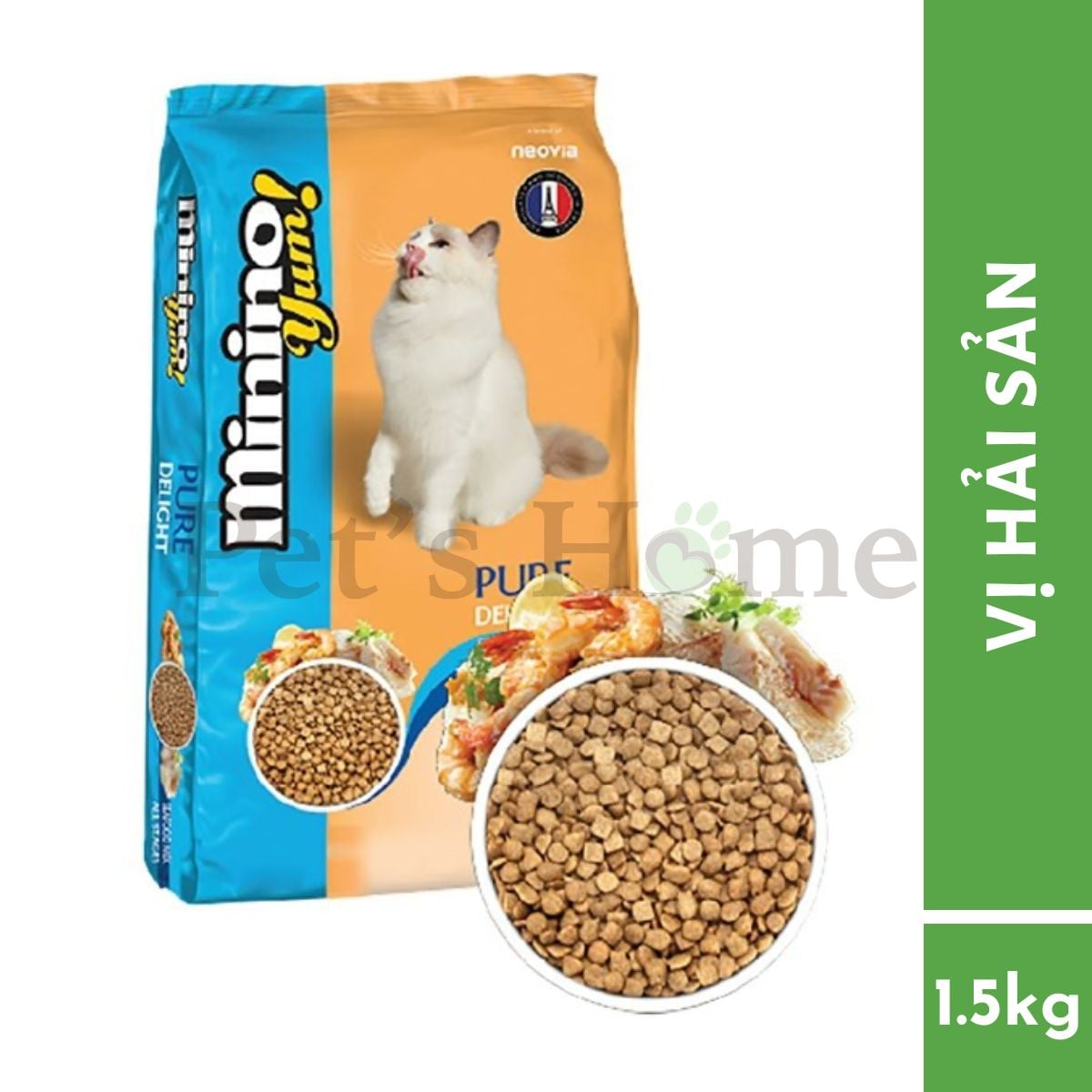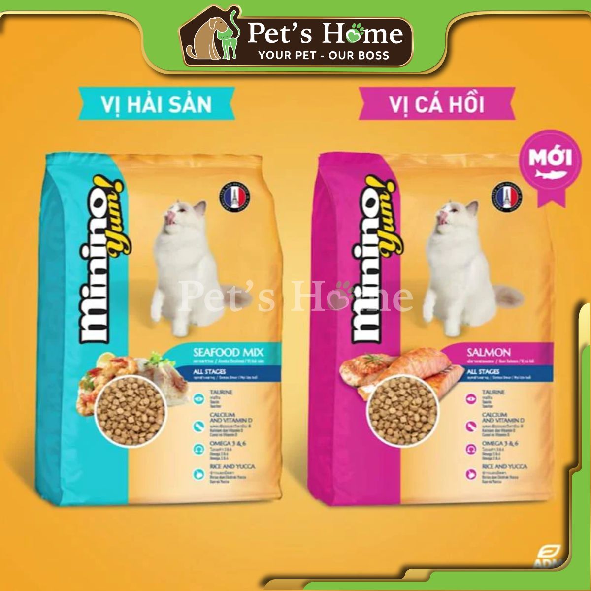 MININO yum được sản xuất theo tiêu chuẩn chất lượng của Pháp với thành phần chính là hỗn hợp hải sản có giá trị dinh dưỡng cao. Được thiết kế và lập công thức theo tiêu chuẩn của Pháp, đảm bảo mức dinh dưỡng cao, đáp ứng nhu cầu tăng trưởng và sức khỏe của tất cả các giống mèo ở giai đoạn trưởng thành.