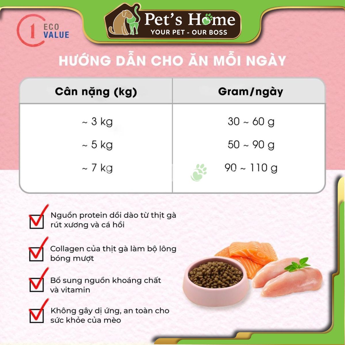 - Nguồn protein dồi dào từ thịt gà rút xương và cá hồi.