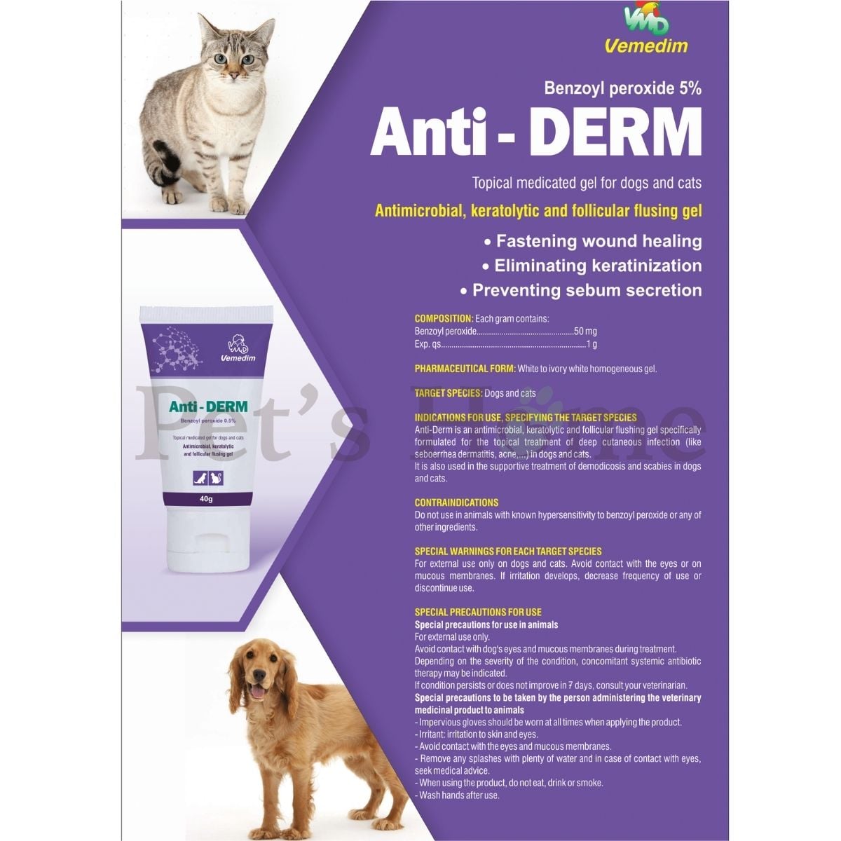 Vemedim Anti DERM - Đặc trị viêm da, ghẻ, xà mâu cho chó, mèo