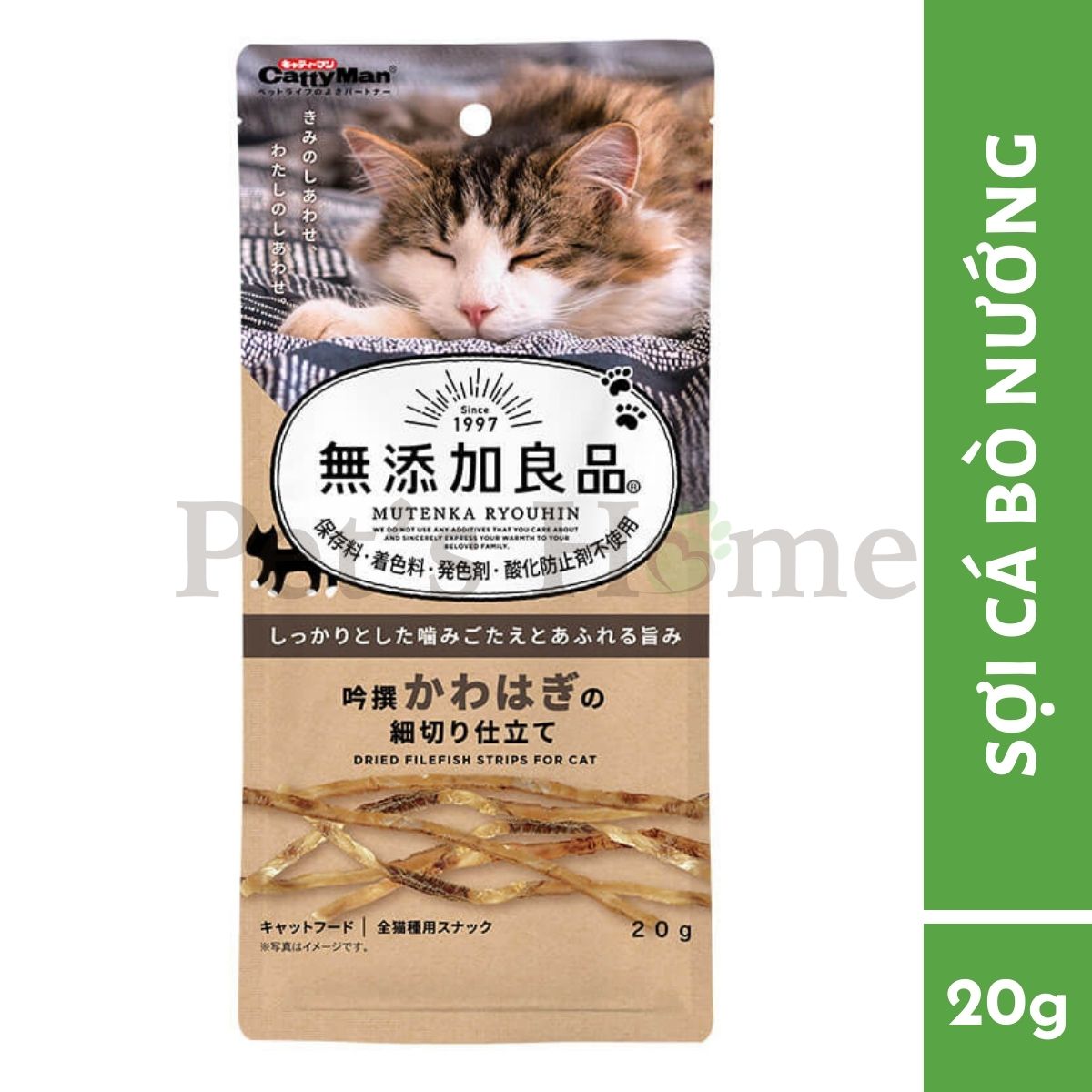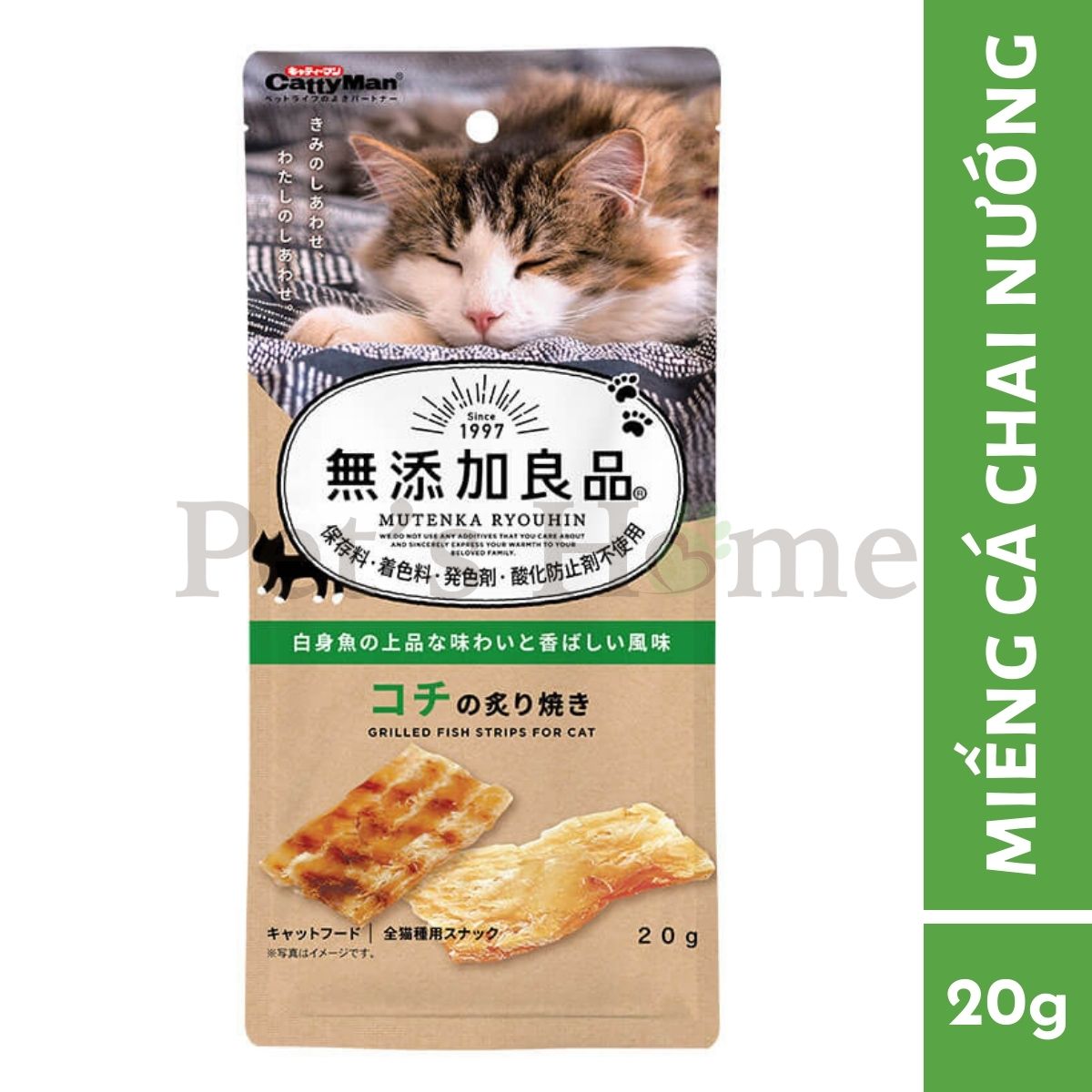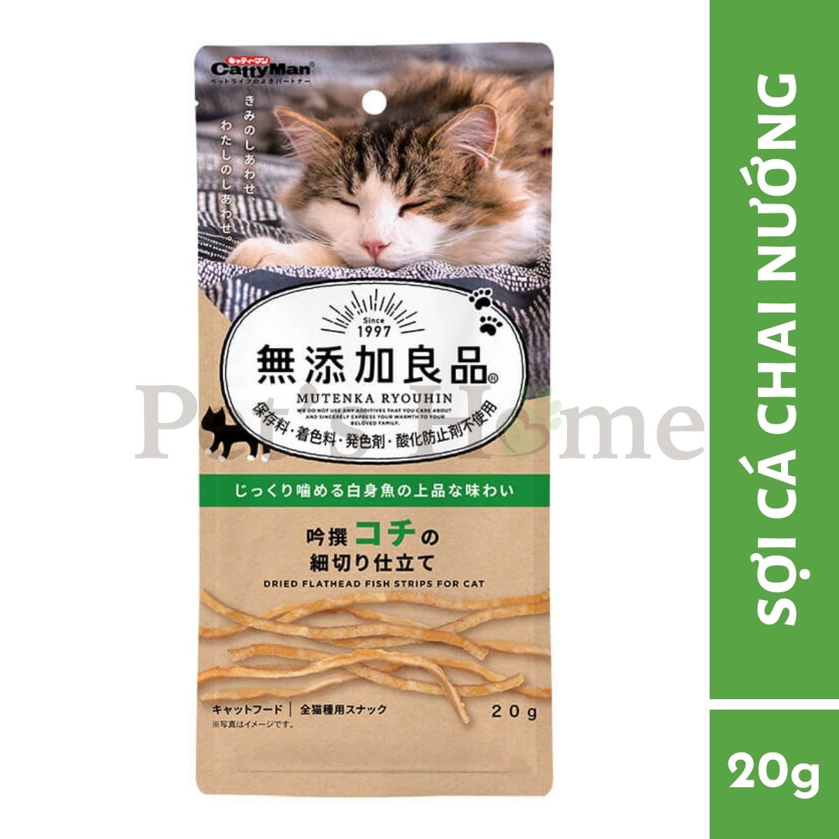 Thịt cá có vị ngọt thanh và nhiều dinh dưỡng cho mèo. Được cán mỏng để dễ ăn hơn nhưng vẫn giữ được độ dai vừa phải.