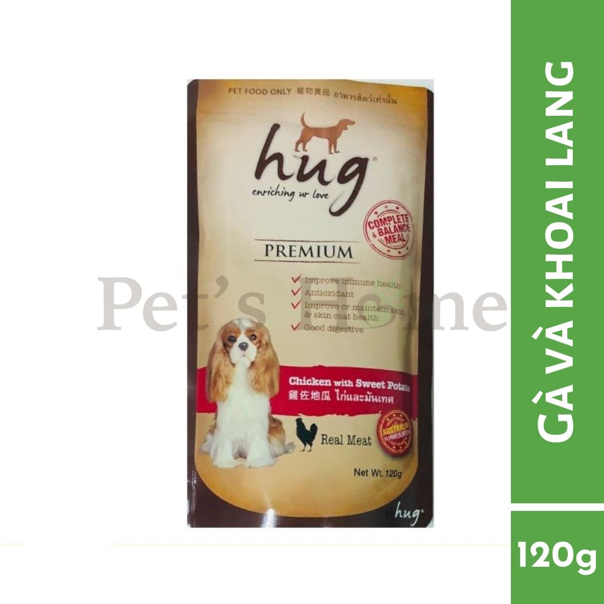 - Vị Gà & Khoai Lang: Thành phần chính: Gà, thịt đỏ cá ngừ, khoai lang, tinh bột sắn, đạm đậu nành, vitamin, khoáng chất...