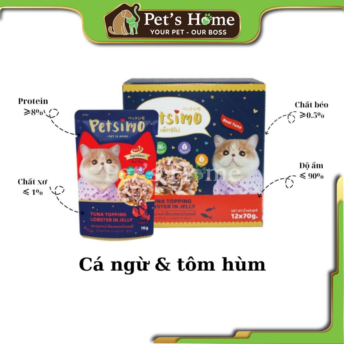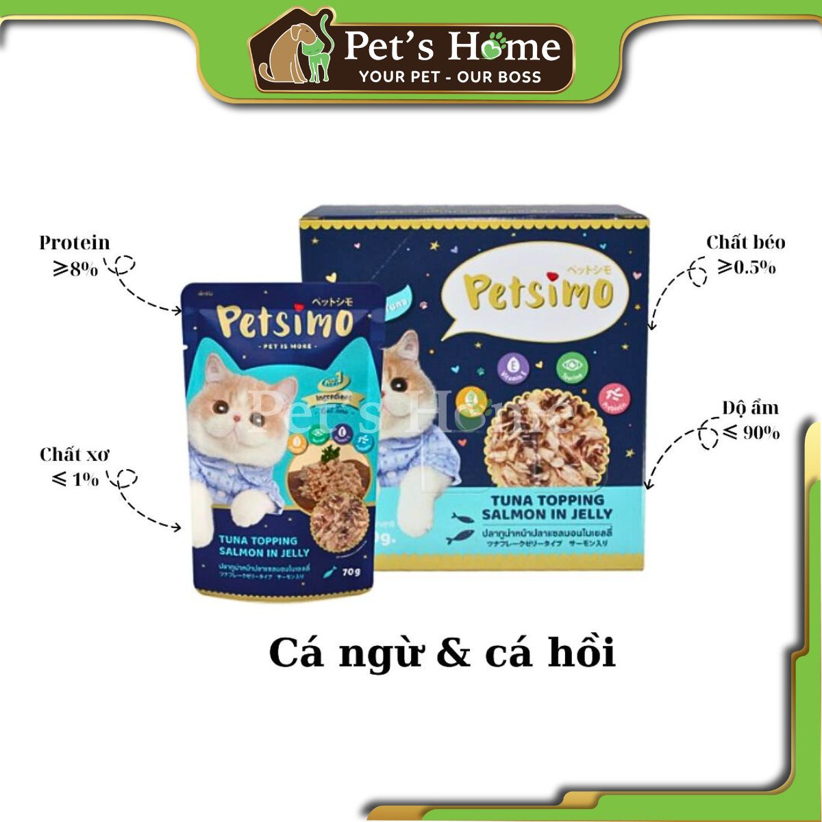 ✅ Công dụng: - Giúp mèo ăn ngon miệng nên 99% các bé Boss ko từ chối pate này ngay cả các Boss khó tính nhất - Chất khoáng + Vitamin E kết hợp trong các thành phần chứa hàm lượng dinh dưỡng cao bậc nhất trong các sản phầm cùng loại, giúp mèo bổ sung năng lượng vận động tối ưu, tăng cường hệ miễn dịch, lông da móng khỏe mạnh. - Thành phần đường FOS kết hợp prebiotic giúp tăng cường hệ hệ vi sinh vật có lợi trong đường ruột > giúp mèo tăng khả năng hấp thụ, tiêu hóa tốt. - Đặc biệt hơn Petsimo giúp mèo bổ sung Taurine để đôi mắt nhanh nhẹn linh hoạt và khả năng nhìn trong bóng tối hoàn thiện (hiếm các sản phầm thức ăn cho mèo làm được điều này