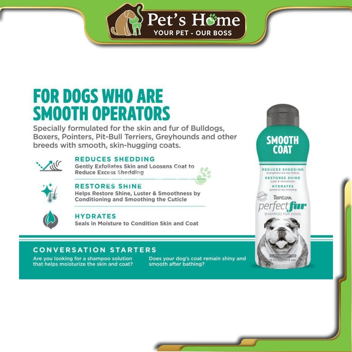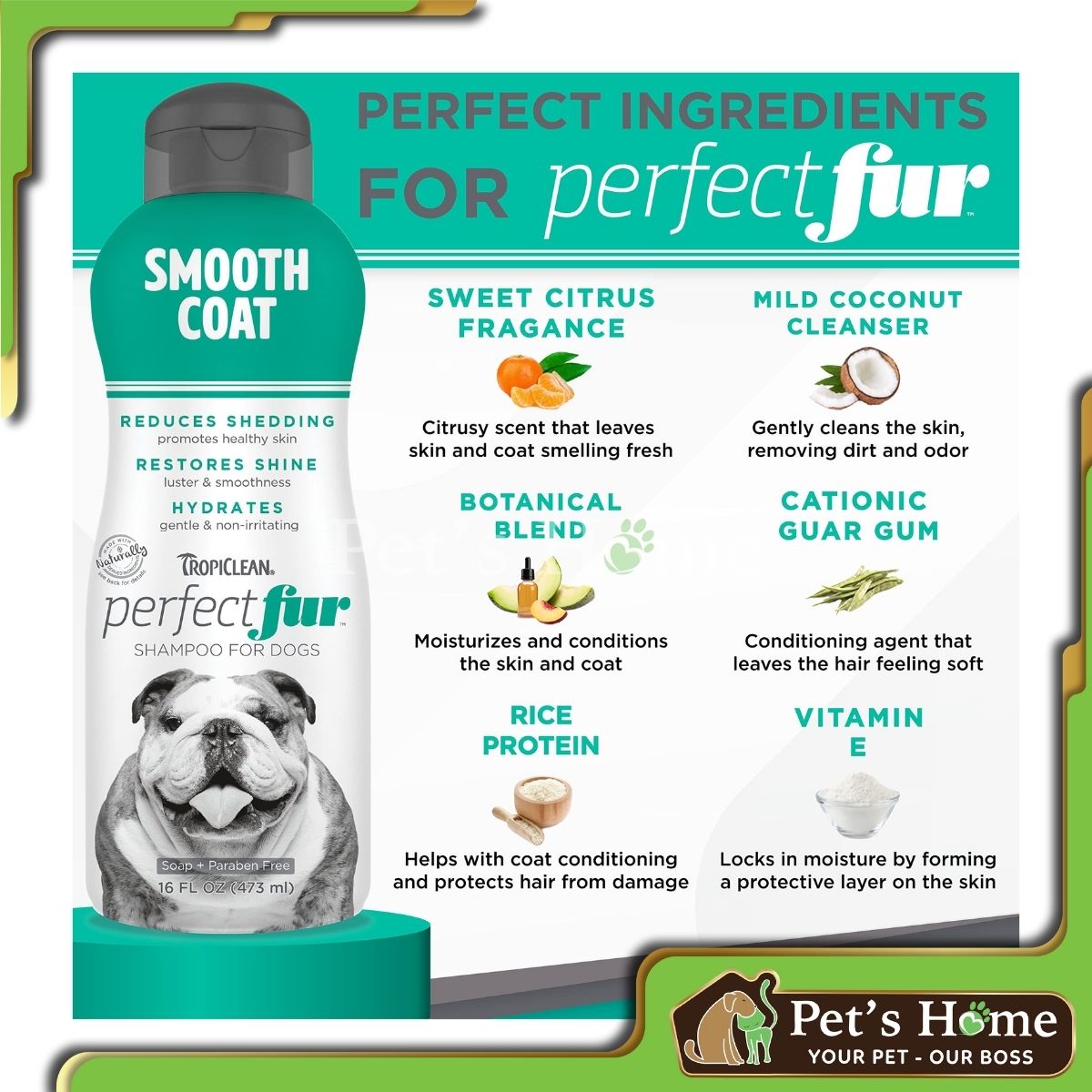 Dầu Gội Cho Chó Lông Ngắn Perfect Fur chứa công thức đặc biệt nhẹ nhàng tẩy tế bào chết trên da, làm mềm lớp lông tơ để giảm sự rụng thừa đồng thời củng cố nang lông. Hiệu quả trong việc cấp ẩm, phục hồi độ sáng bóng và mềm mượt bằng cách dưỡng ẩm lớp biểu bì.