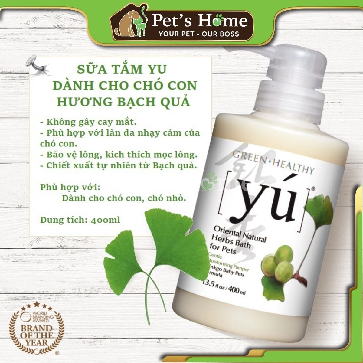 SỮA TẮM YU HƯƠNG BẠCH QUẢ với tinh chất Ginkgo nhẹ nhàng nuôi dưỡng và bảo vệ da cho thú cưng của bạn.