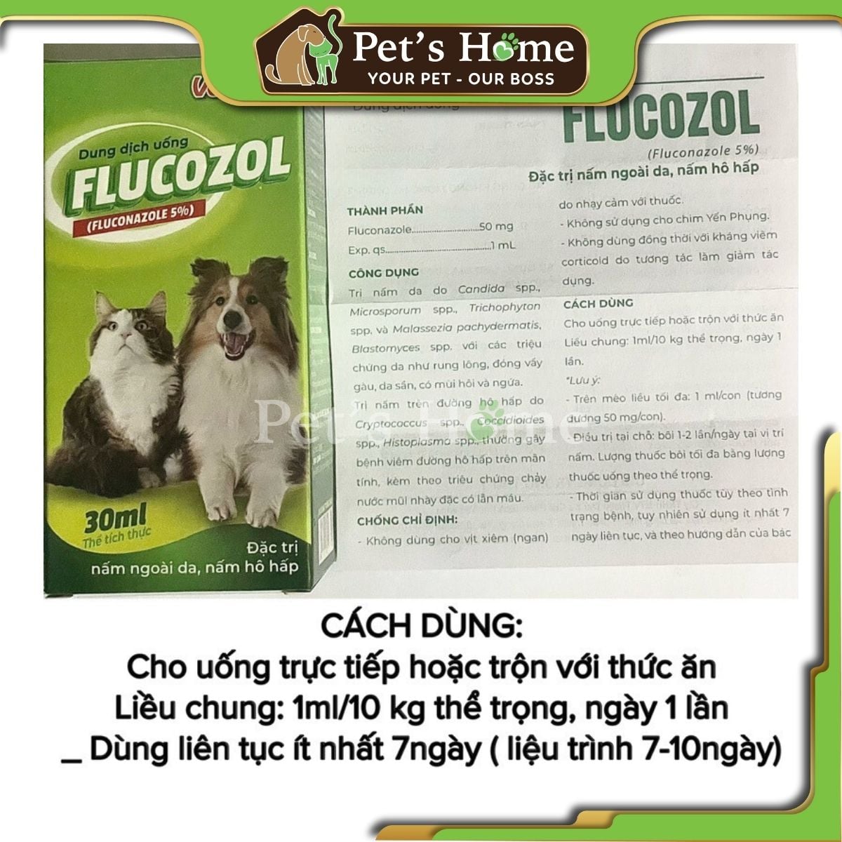 ✅ Công dụng: Trị nấm trên chó, mèo, thỏ, gia cầm (gà đá, gà thả vườn, chim cảnh, bồ câu)