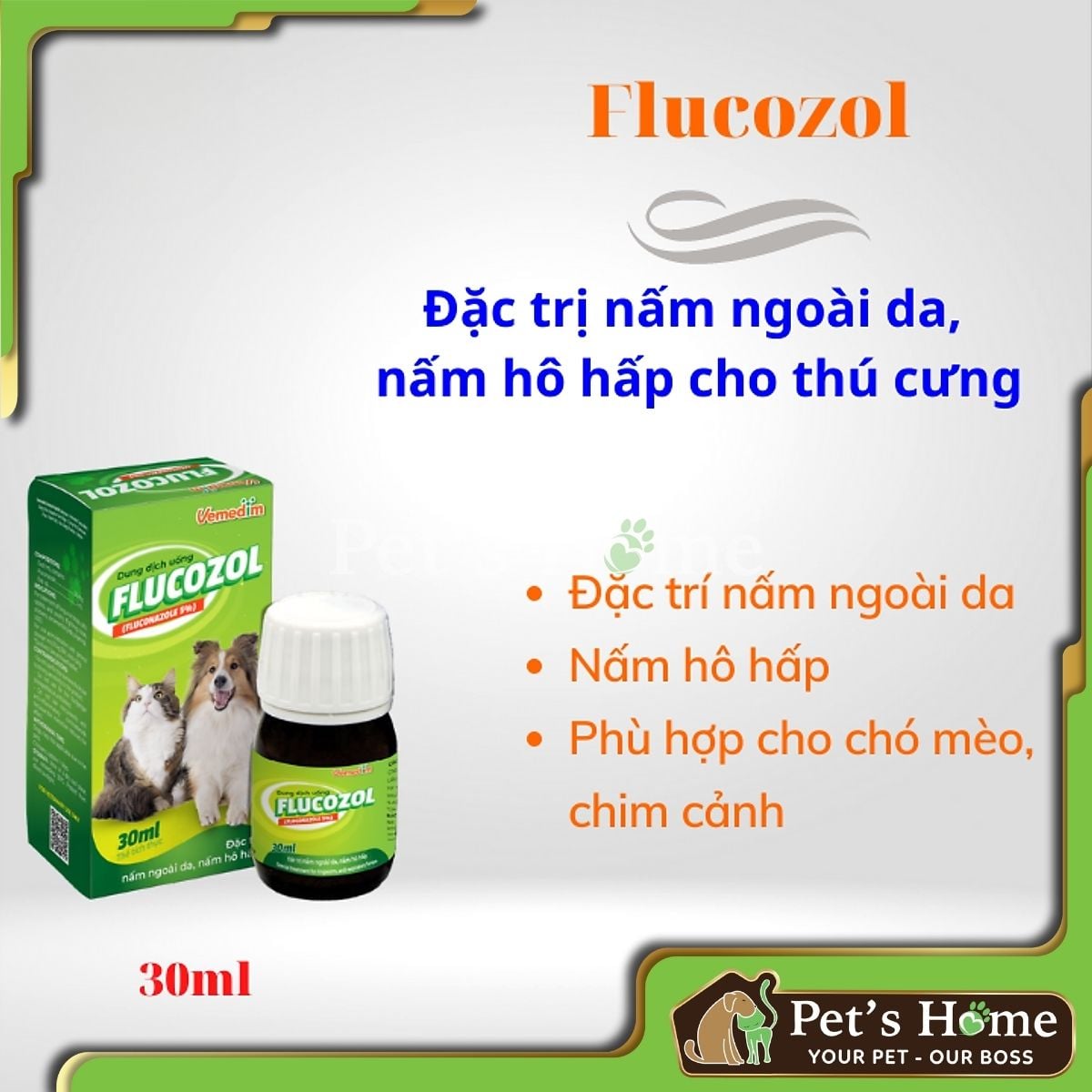 Vemedim Flucozol 30mlVemedim Flucozol - Dung dịch xử lý nấm ngoài da cho chó mèoFlucozol (pet) - Giảm nấm ngoài da, nấm hô hấp cho thú cưngXuất xứ: Việt NamThương hiệu: VemedimĐóng gói: chai 30ml💫...
