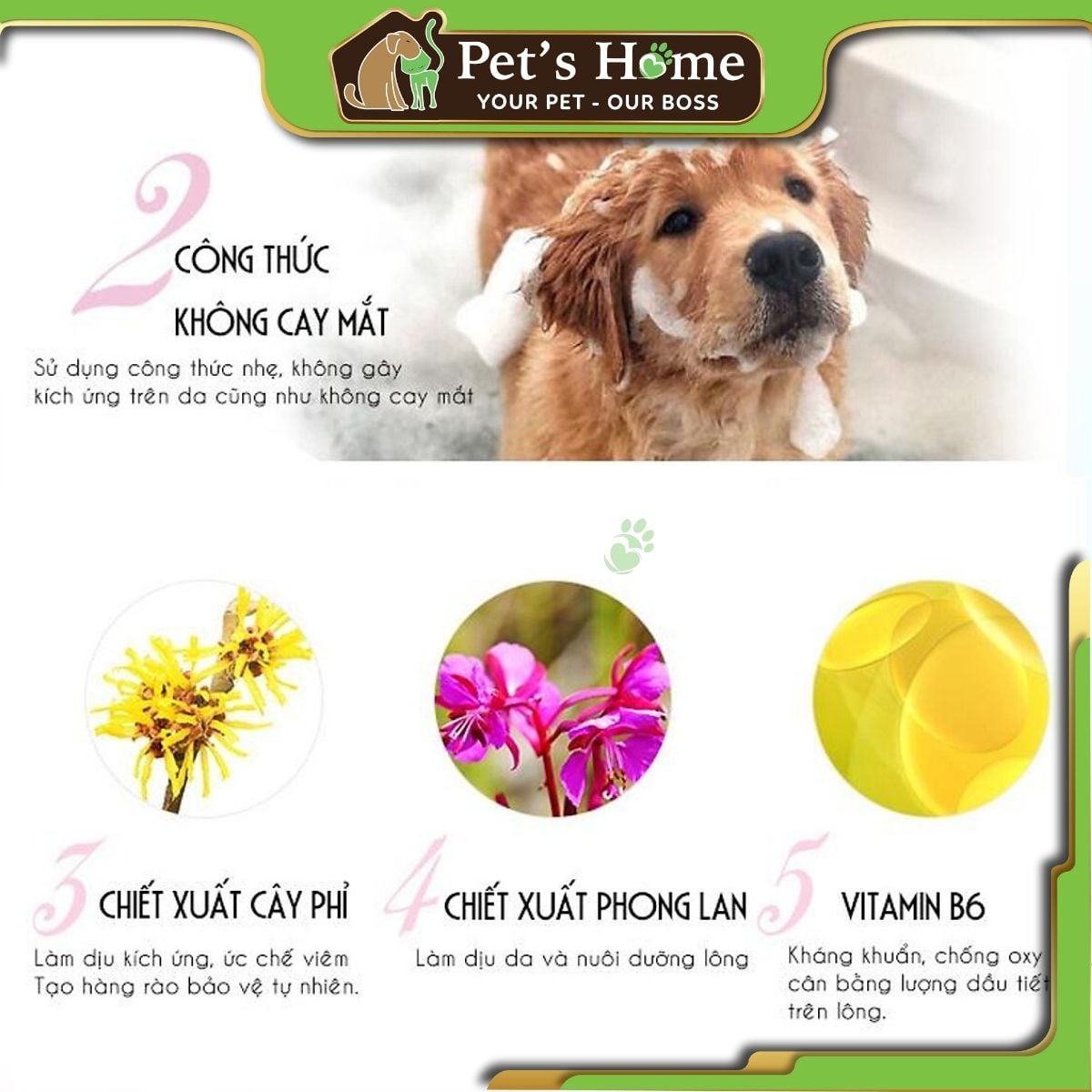- Sản phẩm được chiết xuất hoàn toàn từ thiên nhiên, không có thành phần hóa học, không gây kích ứng hay tác dụng phụ cho vật nuôi. Bạn có thể hoàn toàn yên tâm khi cho thú cưng sử dụng lâu dài.